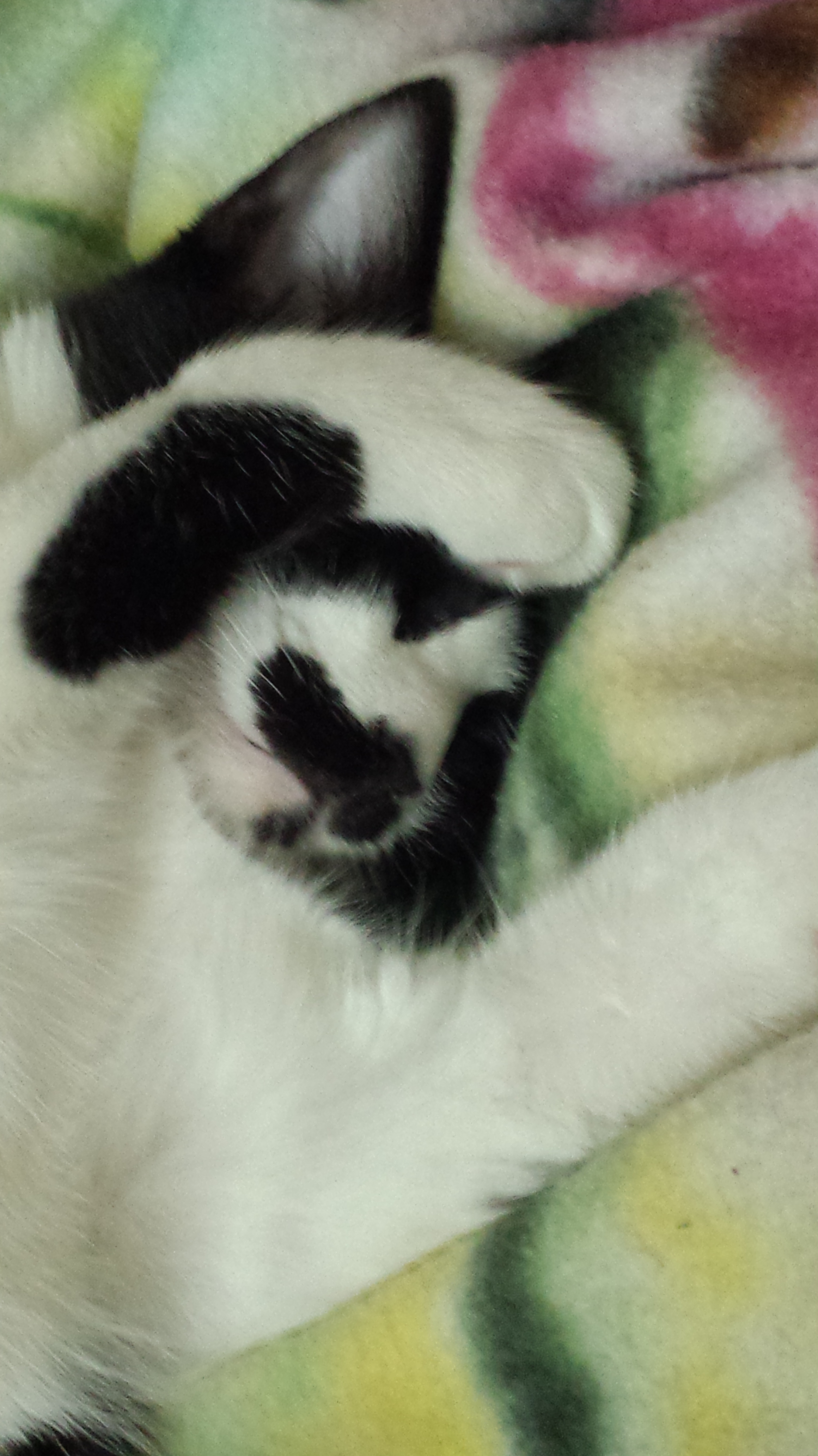 I like that photo of Bosley with her “arm” over her face. Like it’s just too early to get up. And in the box. What is it about cats and boxes? 🙂