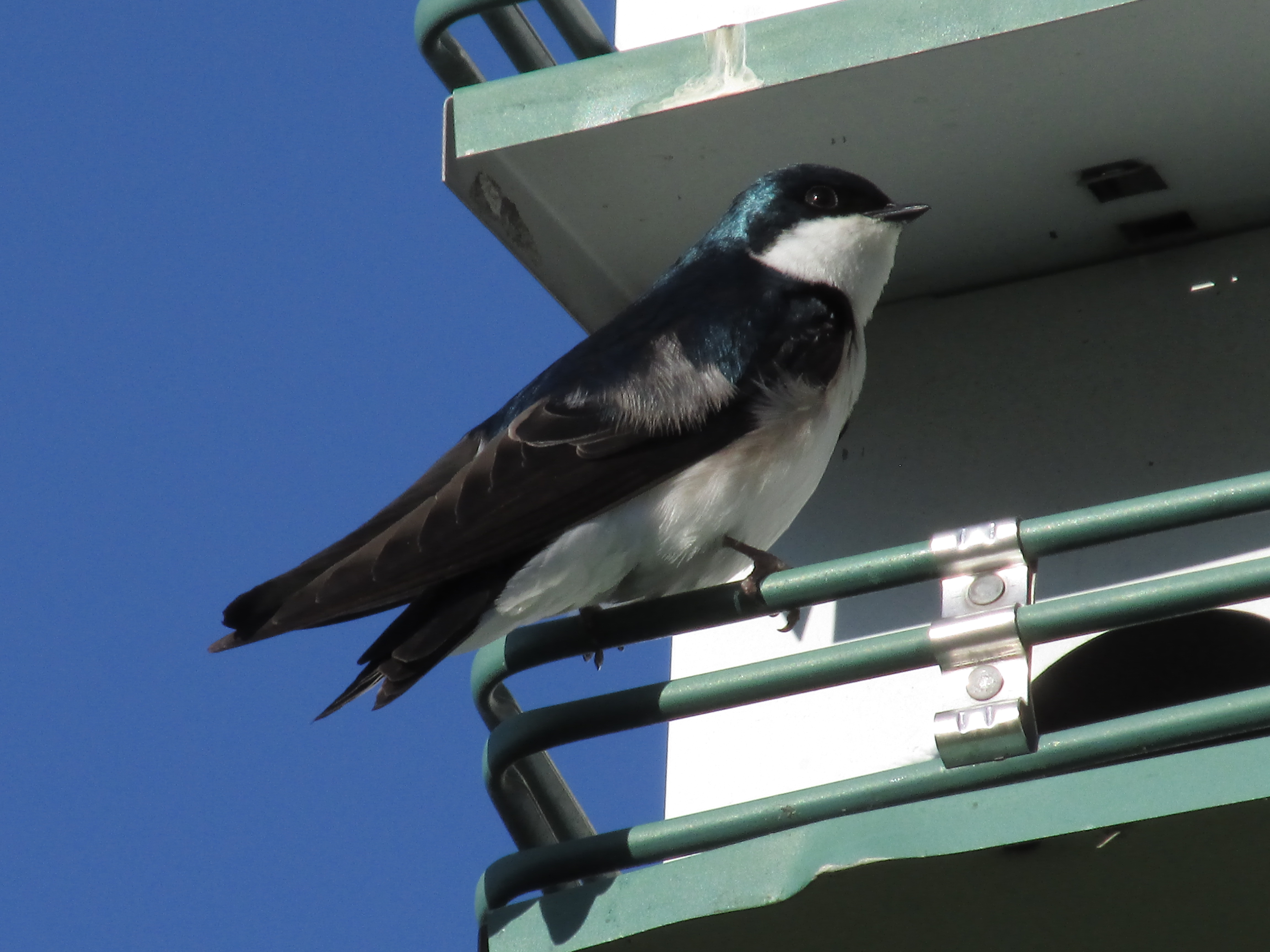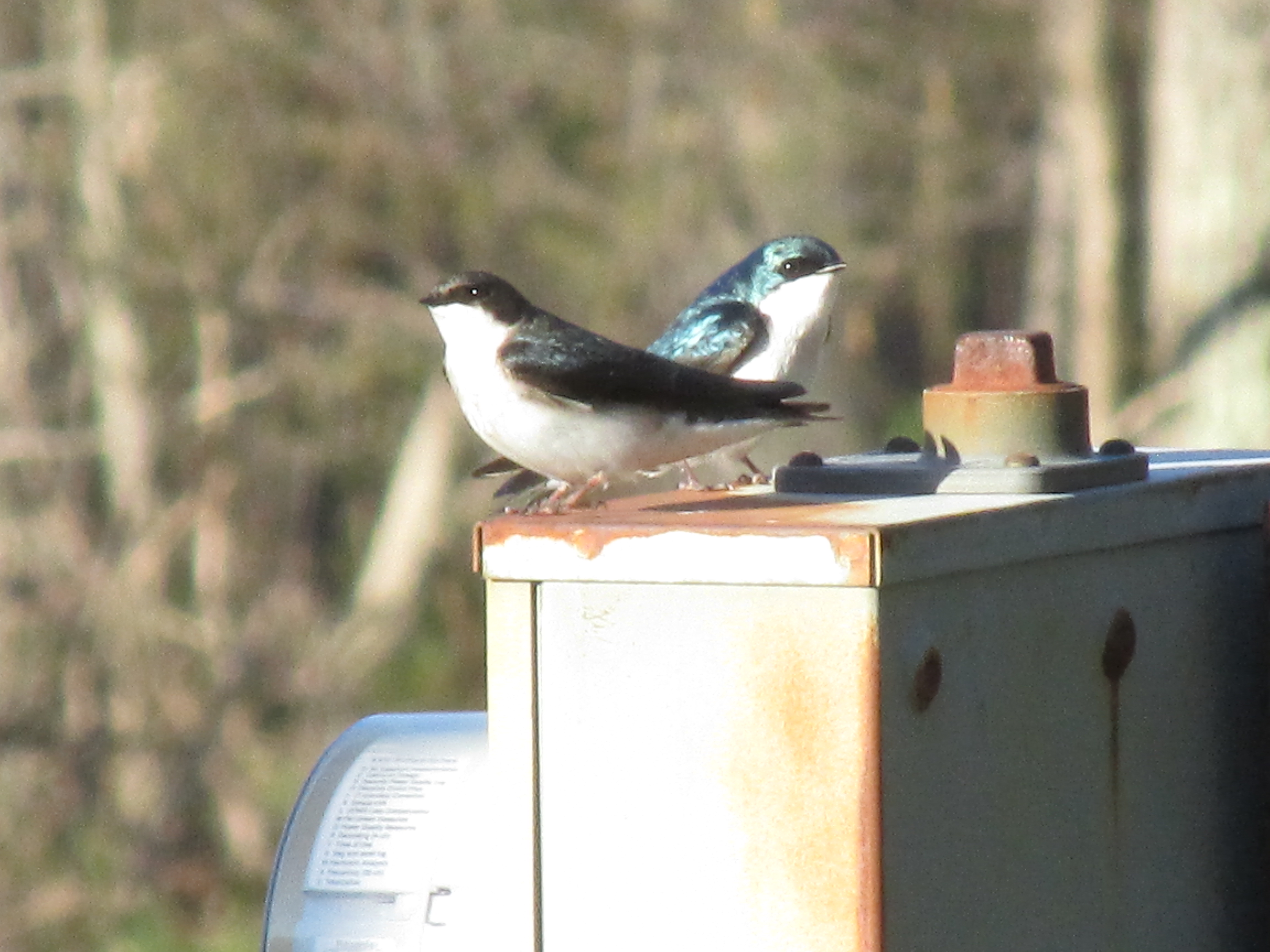 The male swallow was showing off for the female. 🙂 He was struttin’ like crazy.