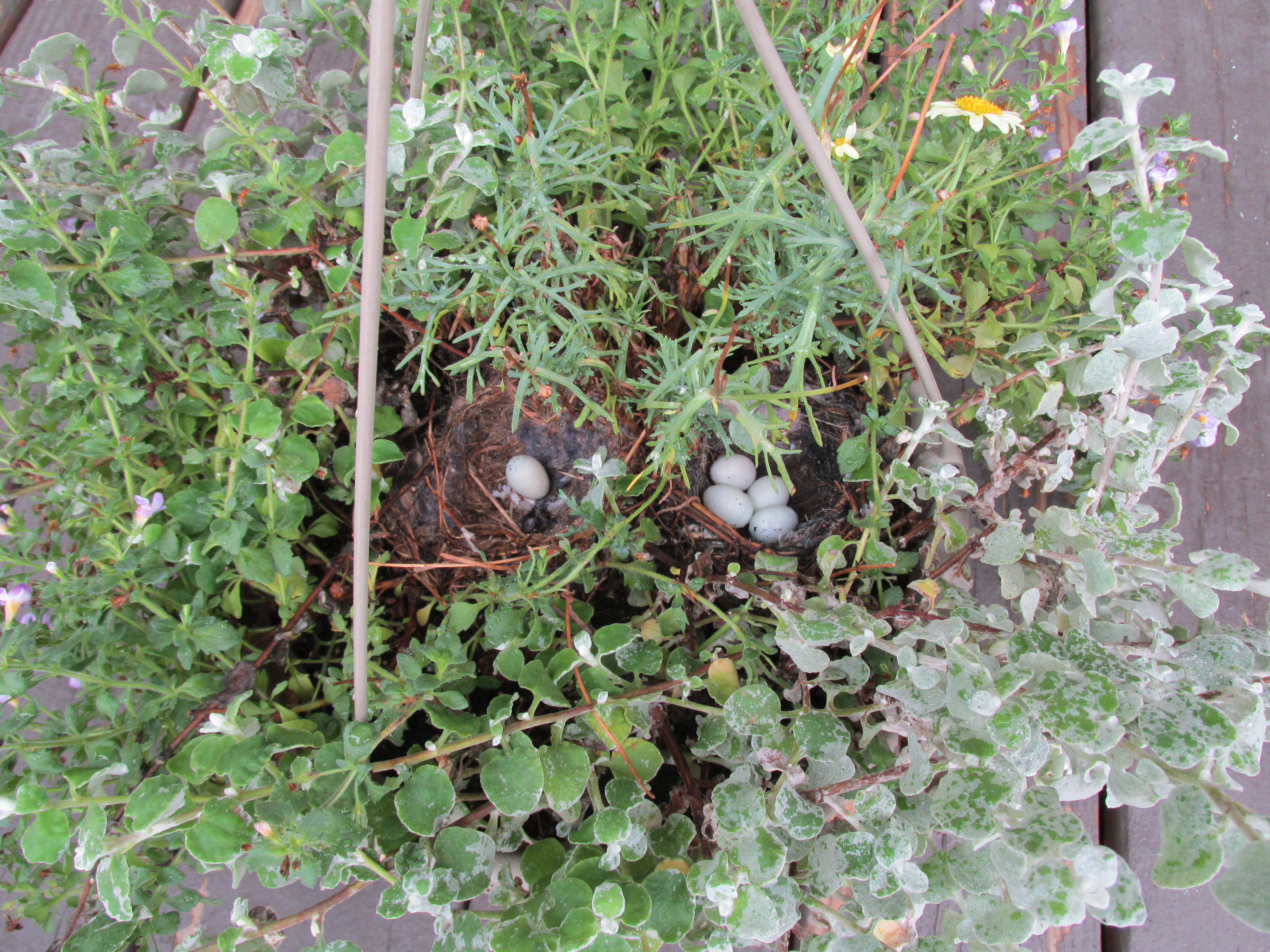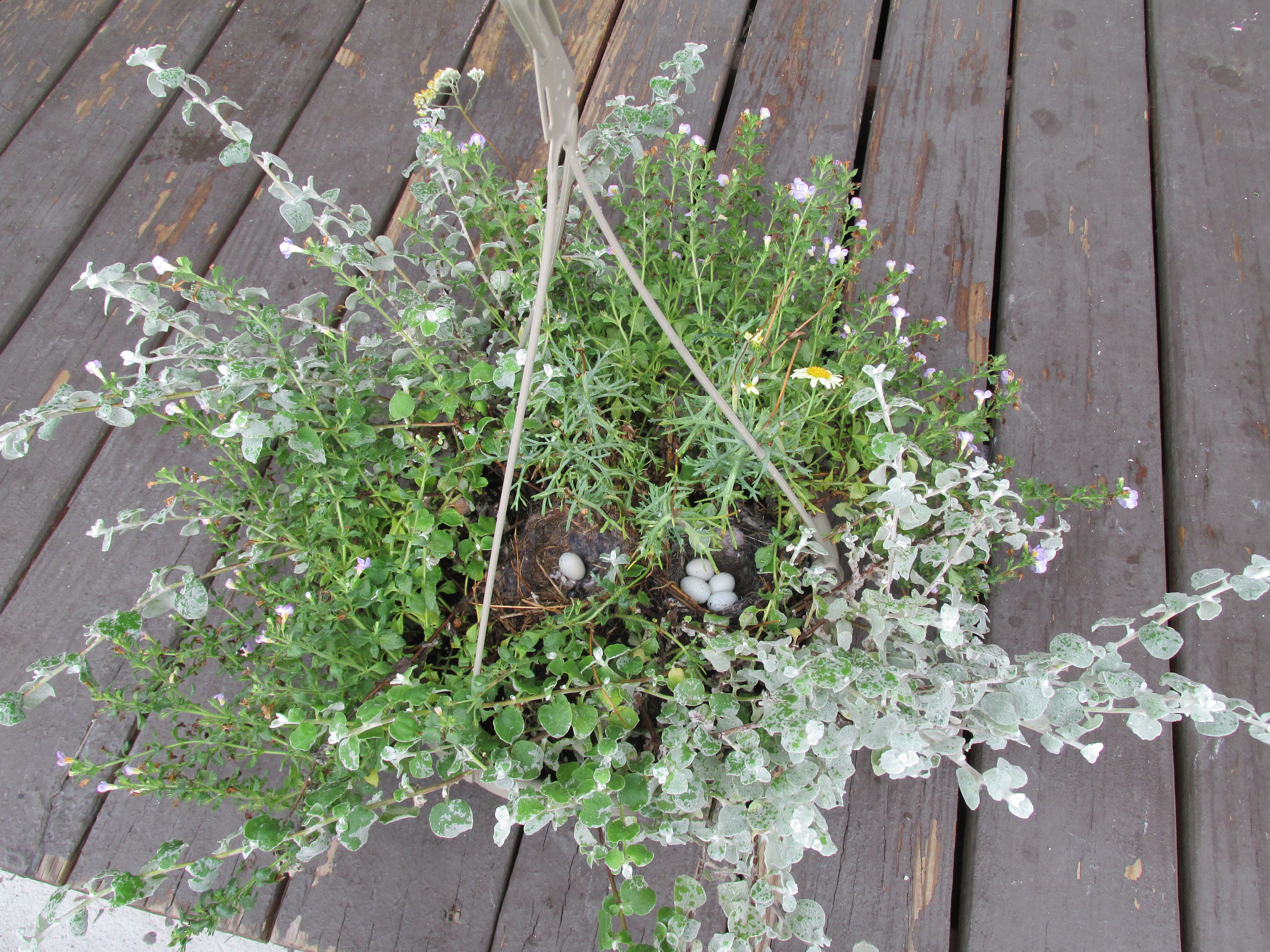 My neighbor got a surprise when she went out to water her hanging plants. 2 birds flew out. Now she’s afraid to water them. 🙂