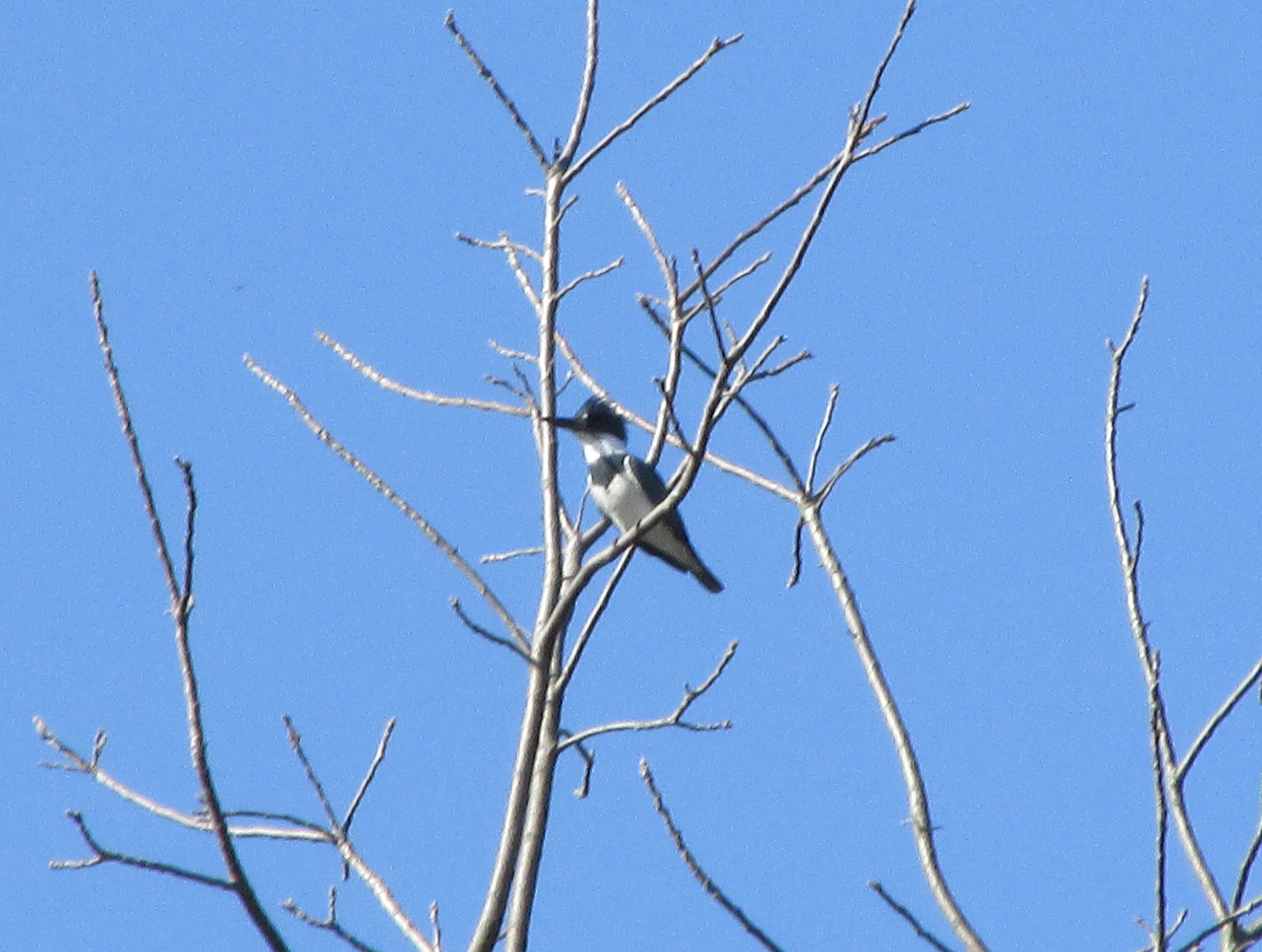 We have Kingfishers everywhere at our local park. Their call is very distinct, and loud. It appears that several males have staked out territories and are looking for mates. They will loudly chase out anyone who violates their airspace. The pics are of at least 3 different birds although I could see up to 5 at one point. They put on quite an aerial display but it’s nearly impossible to get a decent shot due to their speed and abrupt maneuvers. In the first shot I was pacing it so the background is blurred. The second was another bird, shot as it flew quickly overhead. The two at the bottom gave me better shots.