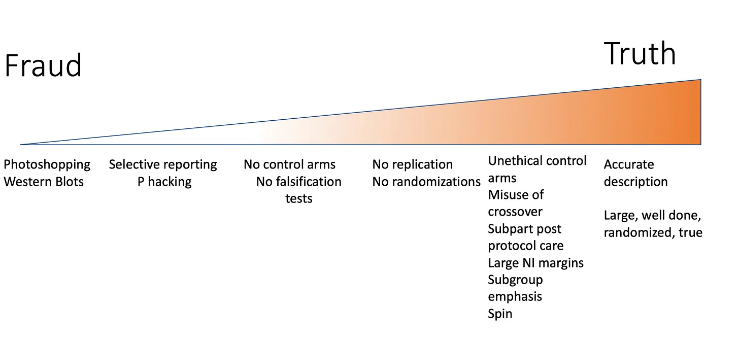 While fraud is the worst conduct— using false studies to support your views is hardly better. The Figure illustrates the spectrum of bad science from Fraud to Truth. Let me give some examples of people using bad science to further their agenda, and argue for strategies to solve the problem.”